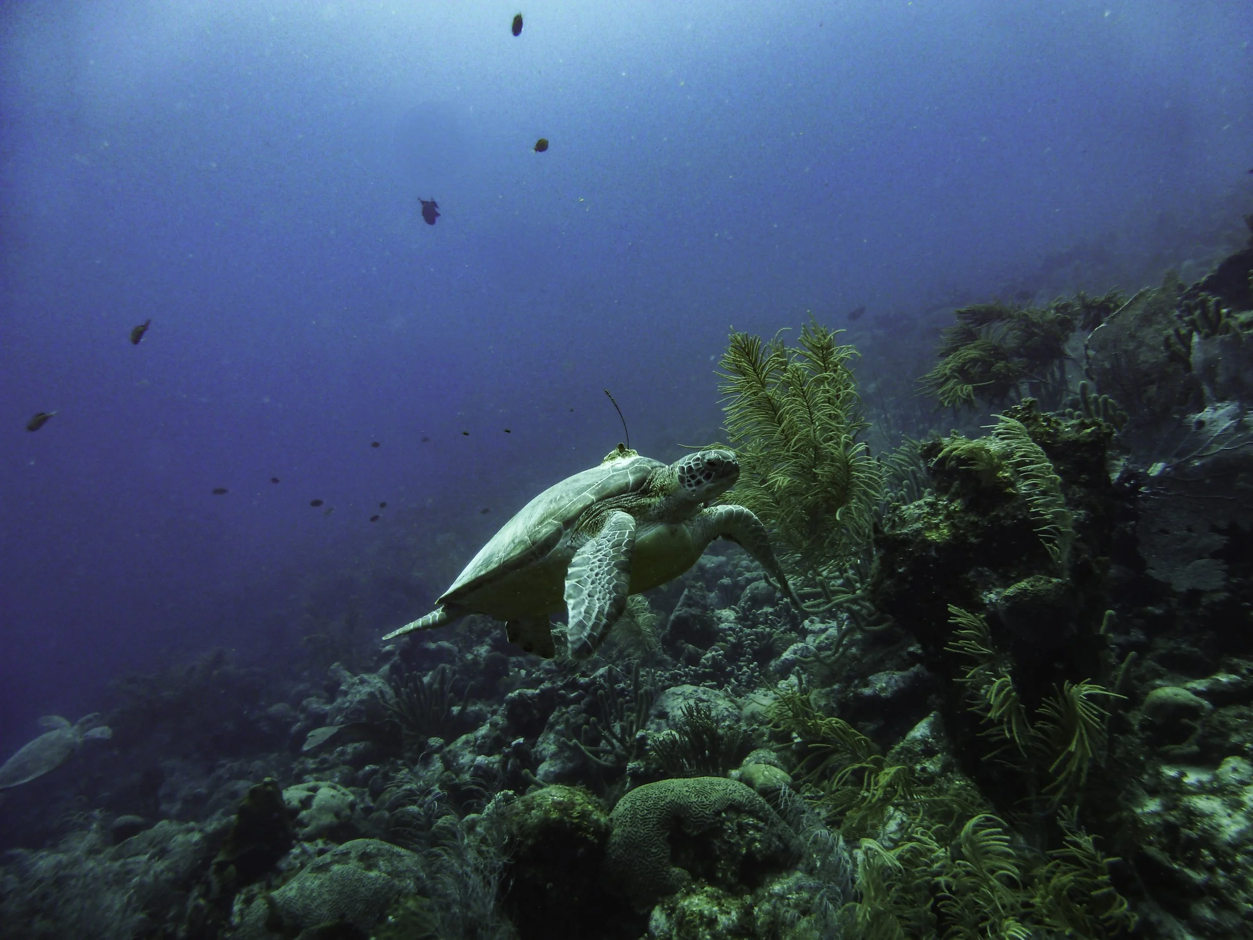 The waters around the Caribbean Netherlands have become increasingly important as foraging areas for turtles. On Saba, juvenile green turtles graze in seagrass beds, while hawksbill turtles are regularly seen on the reefs and the nutrient-rich Saba Bank. On Bonaire, green and hawksbill turtles are widespread, with high numbers of green turtles around Lac Bay, an important area for seagrass.